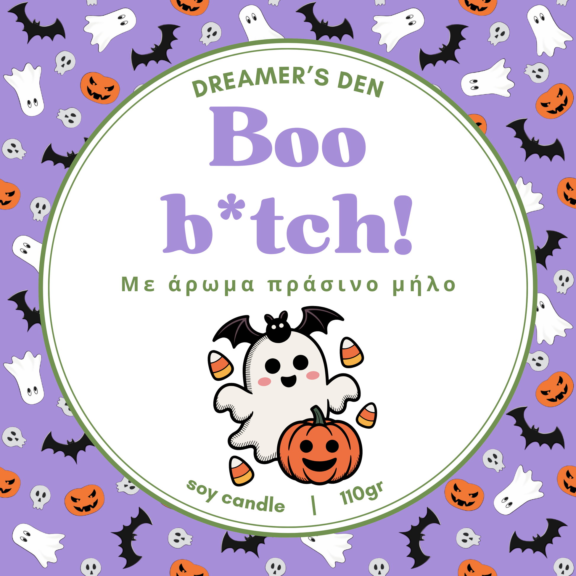 Κερί σε σχήμα φάντασμα από φυτικό κερί σόγιας και βαμβακερό φυτίλι με άρωμα πράσινο μήλο! 🍏